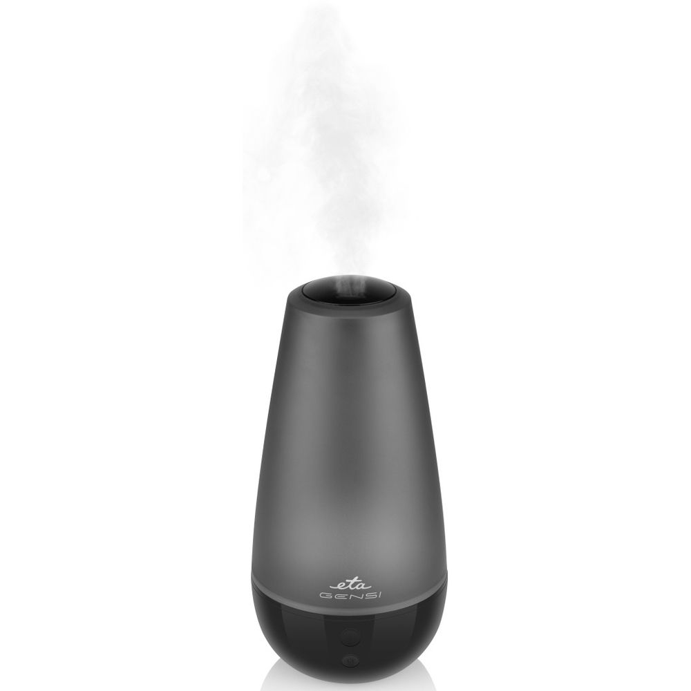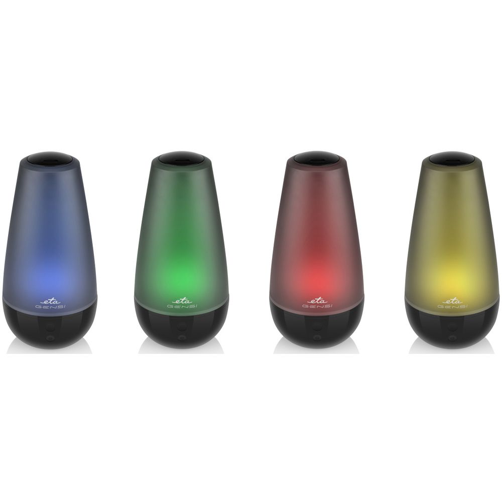 Aróma difuzér ETA663490000 GENSI, ultrazvuková technológia, kombinácia zvlhčovania vzduchu a aromaterapie, pre miestnosť do 30 m2, 16 hodín nepretržitej prevádzky, možnosť použitia s esenciálnymi olejmi, objem zásobníka 2 l, automatické vypnutie po vyčerpaní zásobníka, meniace sa farebné osvetlenie, napájanie cez adaptér, farba: čierna